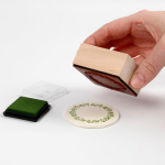 Trin 2: Dup stemplet i stempelfarve og tryk motivet på leret. Kommer der farve ved siden af stempeltryk, kan det fjernes forsigtigt  med lidt vand.